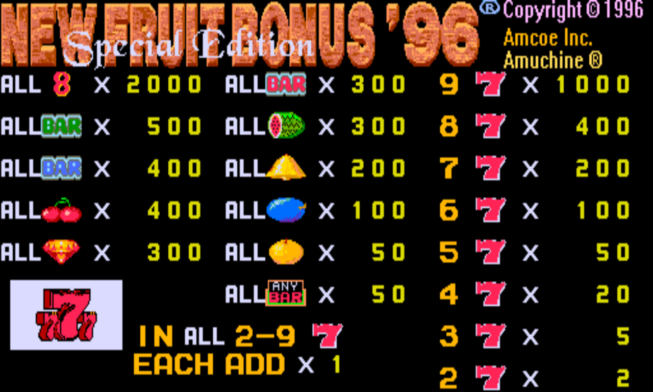 NEW FRUIT BONUS 96 SE